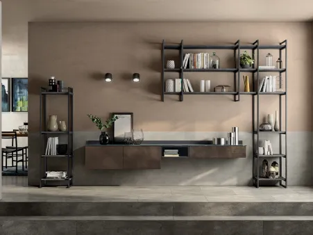 Materiali di pregio e forme decise: scopri la libreria Living Motus Grigio Antracite di Scavolini tra le più originali Librerie moderne a muro.
