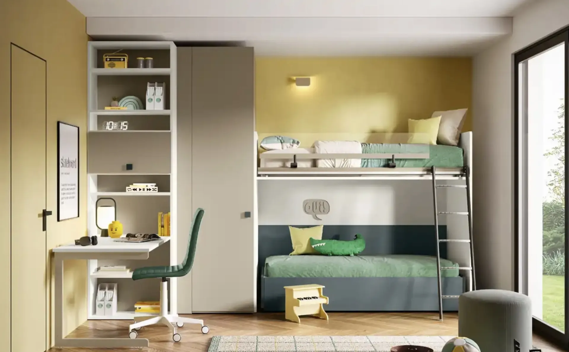 Per progettare al meglio le Camerette, Moretti Compact Camerette presenta soluzioni progettuali e versatili: sono numerose le attività che i tuoi figli svolgono lì. Venire in negozio significa visionare in prima persona tutte le più esclusive soluzioni per bambine con letti a castello in melaminico che presentiamo nel nostro punto vendita. Il noto marchio presenta svariate soluzioni moderne, così la cameretta sarà una stanza dove i bambini avranno la possibilità di crescere e sognare. Con la Cameretta K114 di Moretti Compact Camerette renderai la stanza dei tuoi figli un interno davvero funzionale e sicuro, che li seguirà mentre diventano grandi.