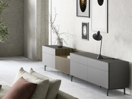 Arreda un soggiorno pratico e operativo con questa madia Box 18 03 di Novamobili: scopri le più esclusive Madie in laccato opaco.